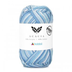 Acacia print is a light weight Variegated yarn and is a blend of 51% Acrylic and 49% Cotton. Comes in a total of 15 Colours.